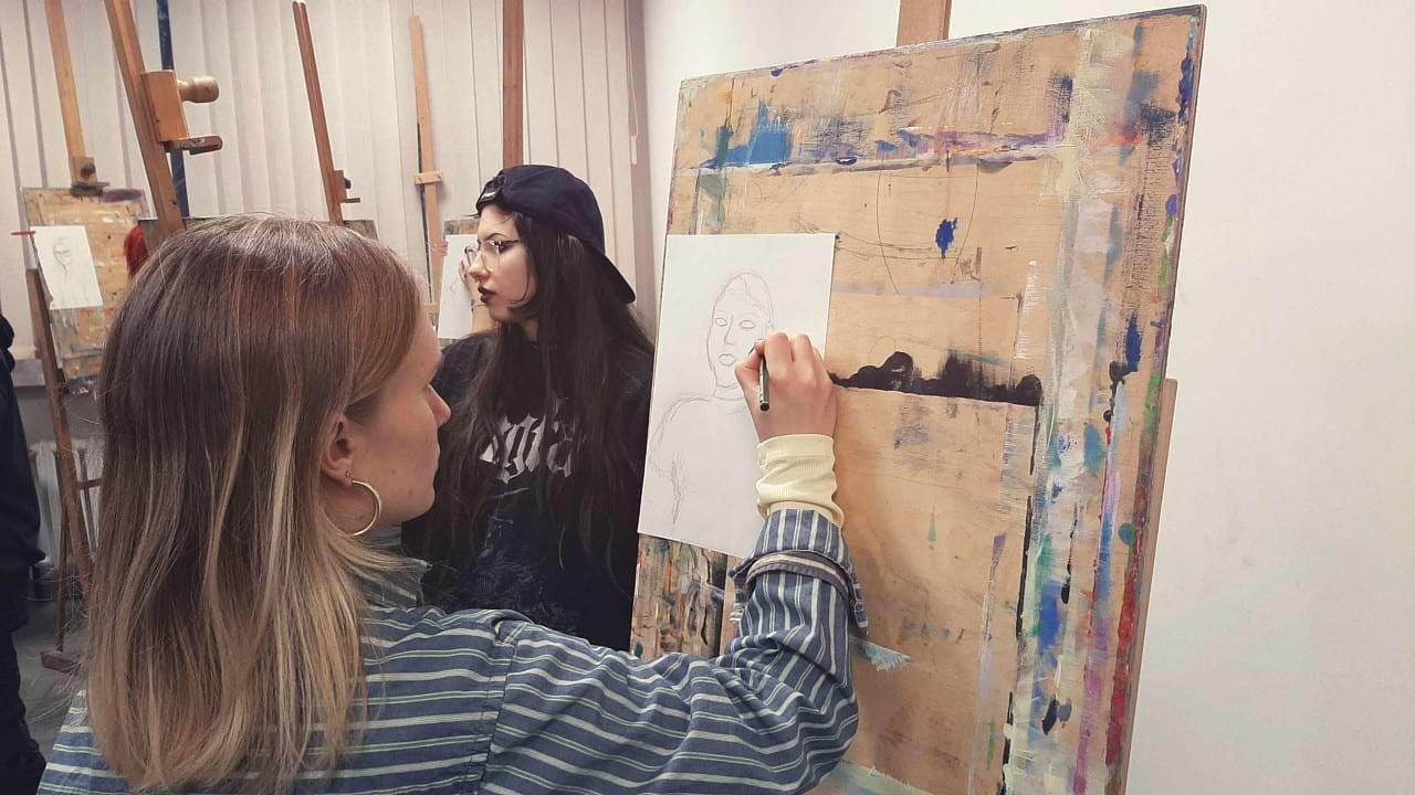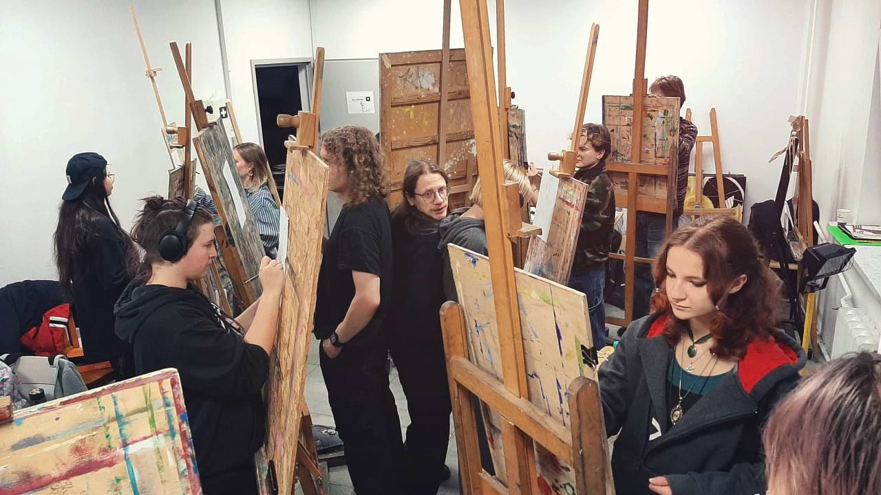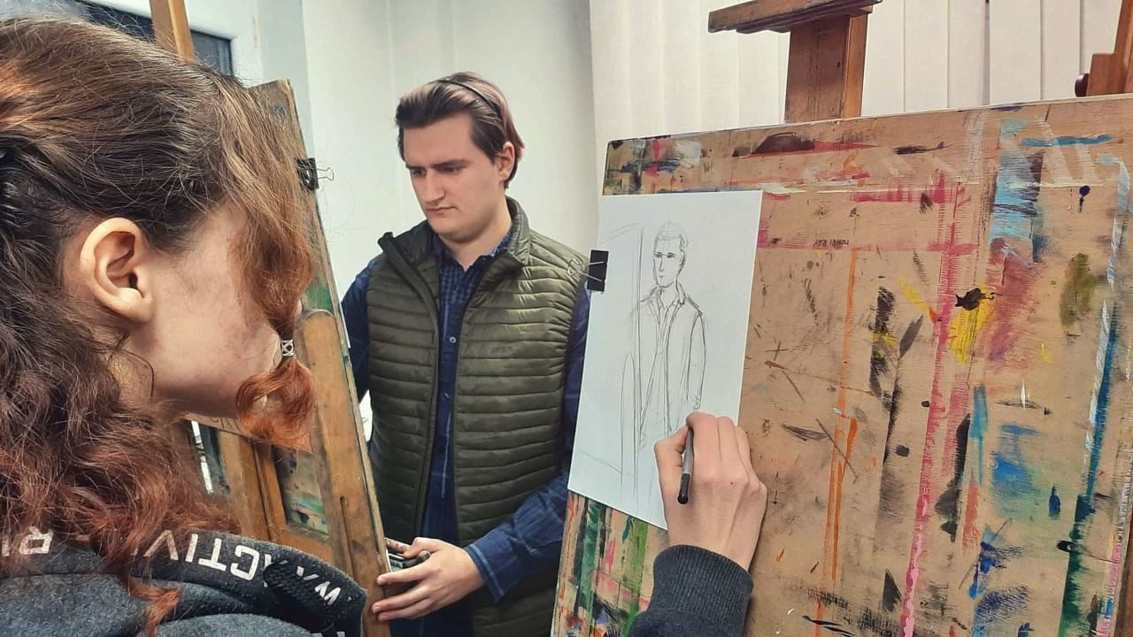 W naszej pracowni wiele się dzieje i wszystkie sztalugi są porozstawiane w zagmatwanych konfiguracjach! Wygląda na to, że warsztaty rysunkowe prowadzone przez Aleksandra Konarzewskiego lecą pełną parą!