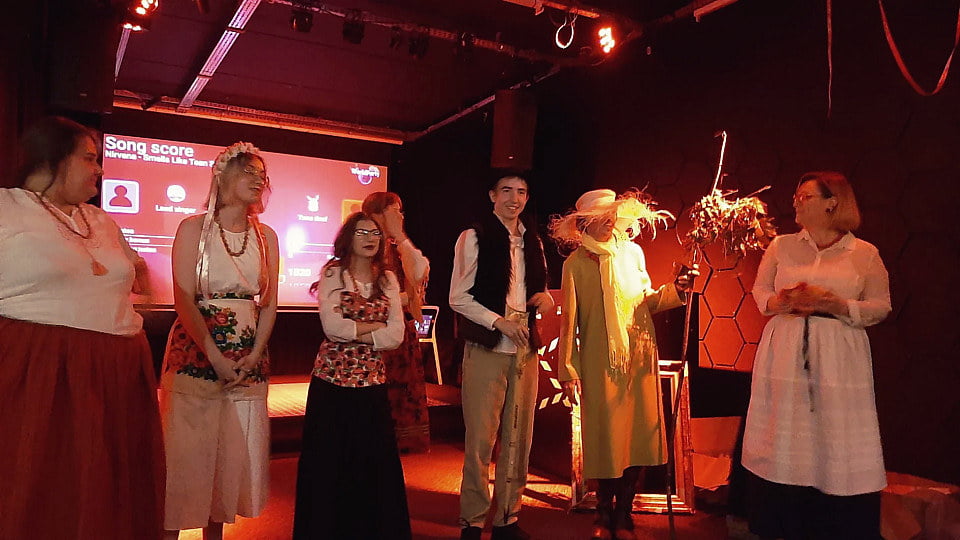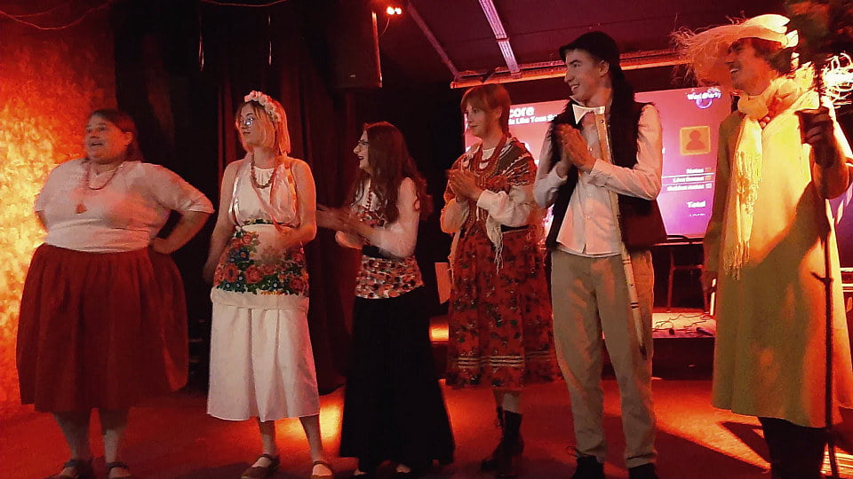 Na imprezie odbyły się aż dwa konkursy! Pierwszy to wybory najlepiej ubranego chłopa i chłopki WSR. Drugi konkurs był dla prawdziwych znawców literatury – quiz wiedzy o Chłopach Reymonta i tradycjach chłopskich, zorganizowany przez Kahoota, przyciągnął tłumy i wzbudził tyle emocji, co wybory sołtysa w Lipcach.